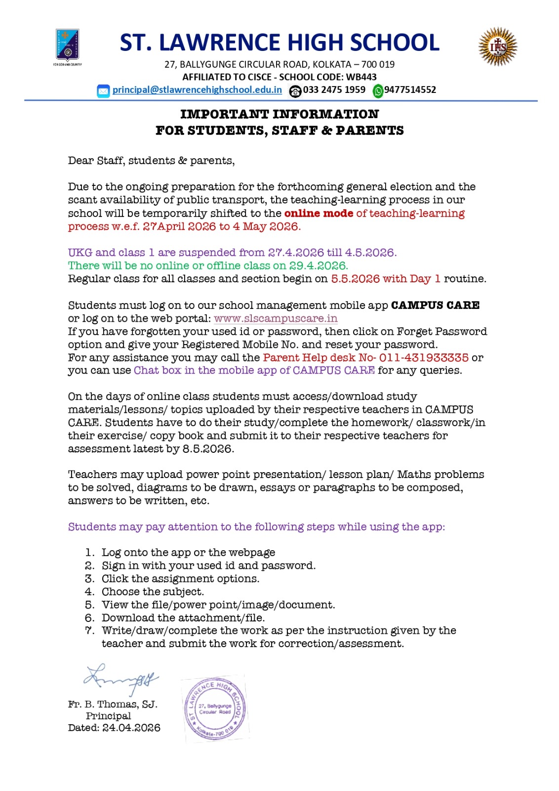 In a world and in a country that is facing greed, indifference towards the poor, where corruption is a way of life, where Education is one-dimensional and educational environments are unsafe for the child, St. Lawrence offers an Education that is safe for holistic development of the child, God-centred, value-based, inclusive and abreast with the latest changes in Education Technology.
